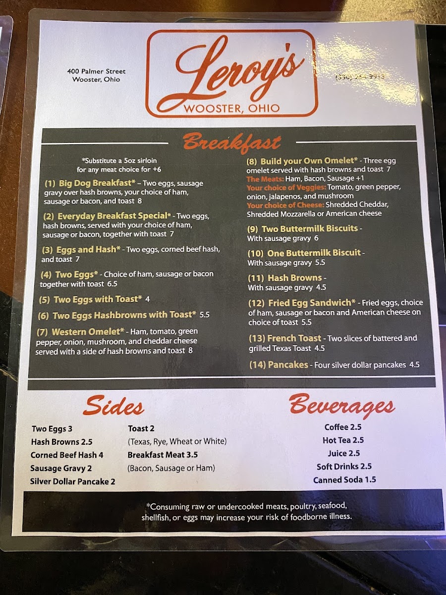 Leroy's of Wooster Menu (Update 2025)
